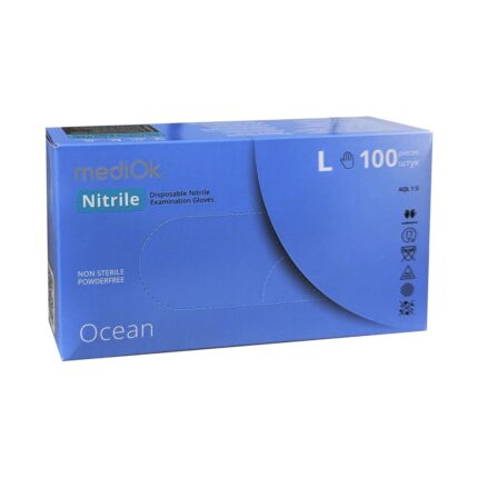 Перчатки нитриловые неопудреные MediOk текстурированые хлорированые голубые, L, 100шт/пач