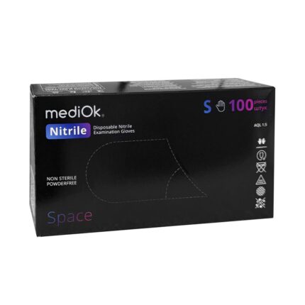 Перчатки нитриловые неопудреные MediOk текстурированые хлорированые черные, S, 100шт/пач 184,00 ₴